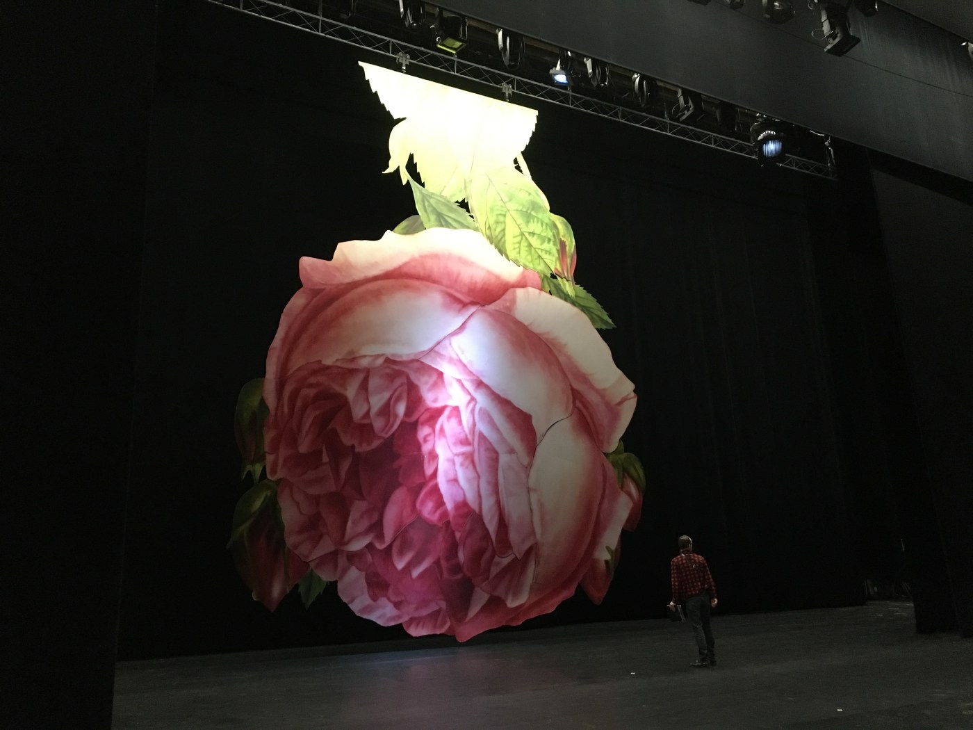 It is very impressive to see big roses dropping down from the ceiling!