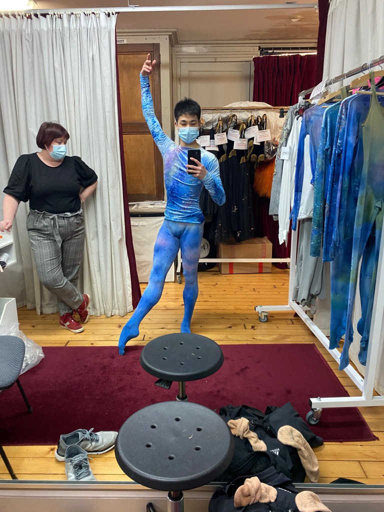 The preparation was going very well, and without thinking for a second about the results of this Concours, i.e. promotion or disappointment, I enjoyed every minute of it.  It was a little shocking to figure out that I was actually the “oldest” candidate of the class ! What !? Seriously? This is all a mental game…… Competing with yesterday’s “me” and not with the others, easier said than done, but this time I think I succeeded ! Each day learning from yesterday’s imperfections, and getting inspired by others’ qualities…… I went to try the costumes of La Source, the green costume which is the original costume of Zaël’s role, then the blue one, which one is better?